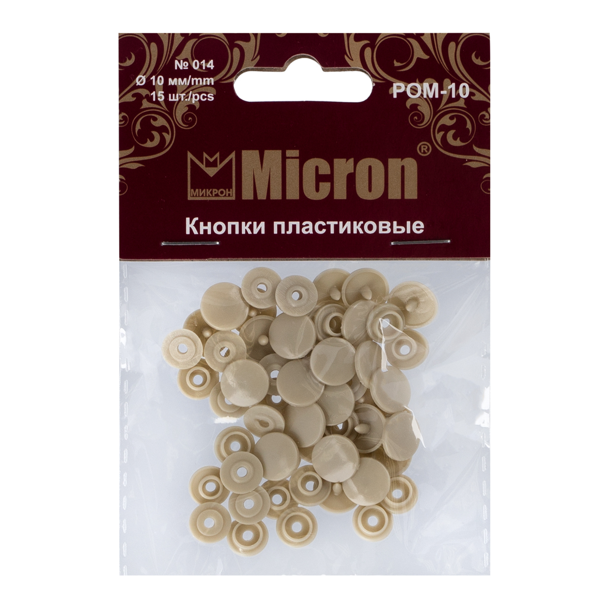Идеальны для установки на детскую одежду, не вызывают «никелевую» аллергию, возникающую у людей с повышенной чувствительностью кожи при соприкосновении с металлом. Комплект состоит из 4-х деталей: двух лицевых - шляпок со шпеньком и двух внутренних - деталей механизма застегивания/расстегивания кнопки. Застегивание и расстегивание происходит за счет упругости материала самих кнопок. Для установки необходимы Щипцы Micron для пластиковых кнопок арт. POM-10/12/15.