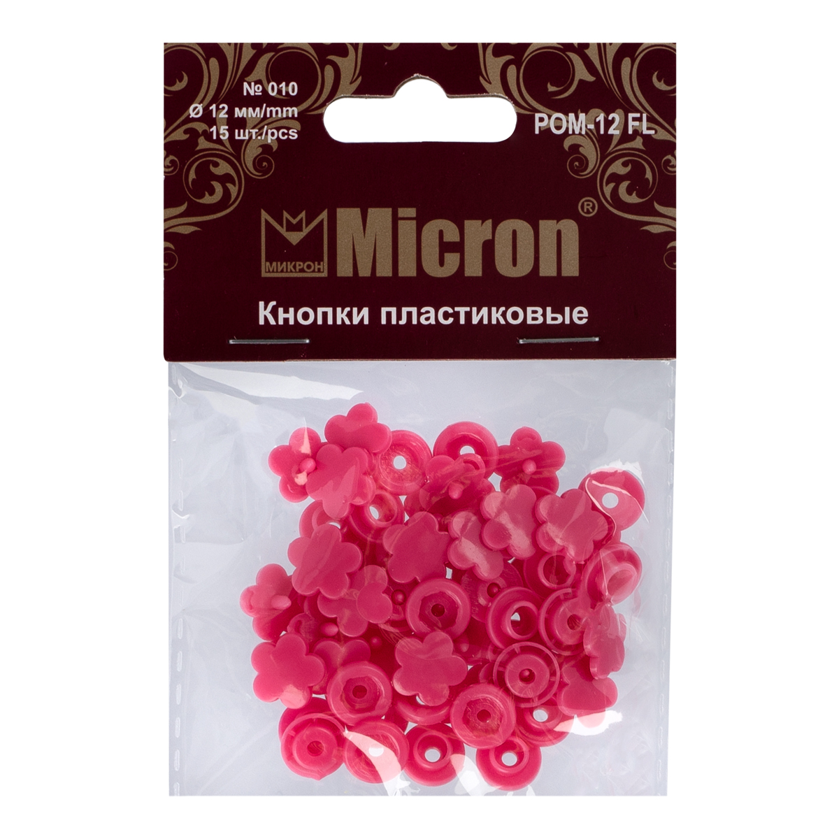 Идеальны для установки на детскую одежду, не вызывают «никелевую» аллергию, возникающую у людей с повышенной чувствительностью кожи при соприкосновении с металлом. Комплект состоит из 4-х деталей: двух лицевых - шляпок со шпеньком и двух внутренних - деталей механизма застегивания/расстегивания кнопки. Застегивание и расстегивание происходит за счет упругости материала самих кнопок. Для установки необходимы Щипцы Micron для пластиковых кнопок арт. POM-10/12/15.