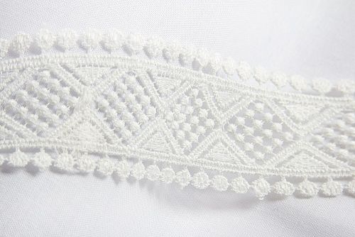 Изысканное, ажурное гипюровое кружево. Имеет широкую область применения: начиная от одежды и свадебных нарядов, заканчивая декором интерьера. Производится в Турции.