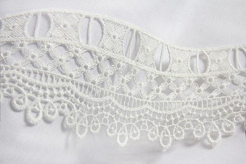 Изысканное, ажурное гипюровое кружево. Имеет широкую область применения: начиная от одежды и свадебных нарядов, заканчивая декором интерьера. Производится в Турции.