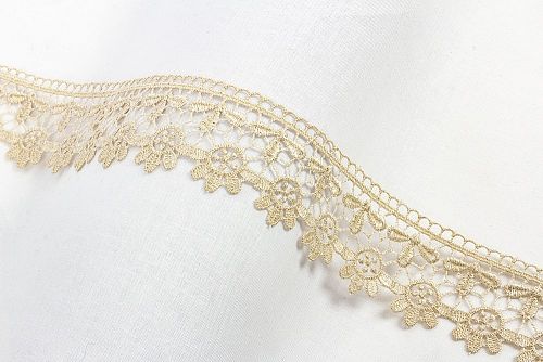 Изысканное, ажурное гипюровое кружево. Имеет широкую область применения: начиная от одежды и свадебных нарядов, заканчивая декором интерьера. Производится в Турции.