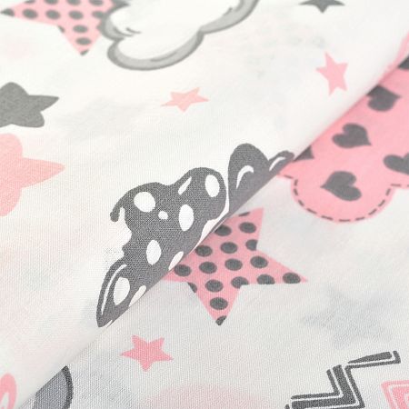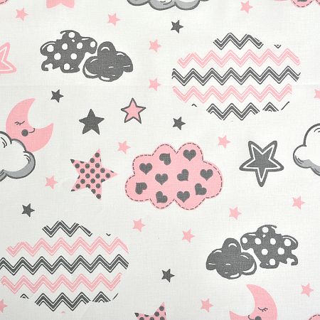 Ткань Мануфактура "Ткань ранфорс Облака" SL20718-12.3, длина 3 м, ширина 2,4 м, цвет белый, розовый, серый