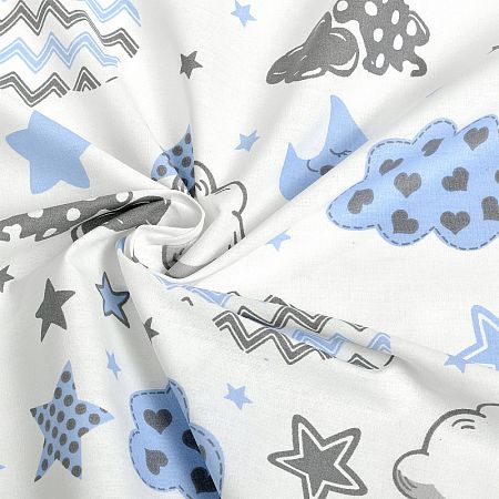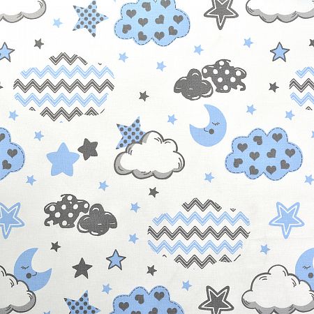 Ткань Мануфактура "Ткань ранфорс Облака" SL20718-14.3, длина 3 м, ширина 2,4 м, цвет белый, голубой, серый