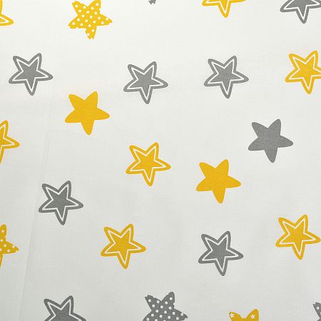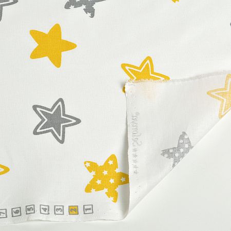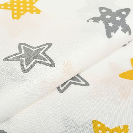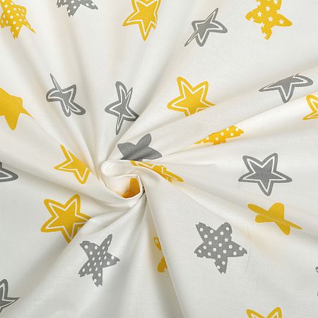 Ткань Мануфактура "Ткань ранфорс Звезды" SL20718-1.3, длина 3 м, ширина 2,4 м, цвет белый, желтый, серый