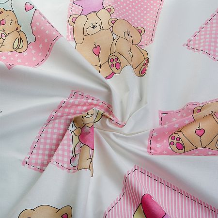 Ткань WellaHome "Ткань ранфорс Мишутки" WH.12455-V02.3, длина 3 м, ширина 2,4 м, цвет розовый