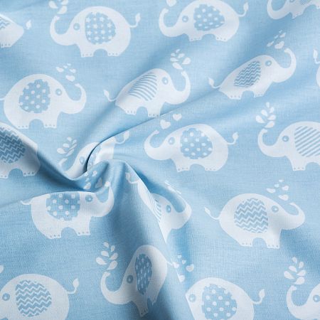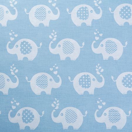 Ткань WellaHome "Ткань ранфорс Слоники" WH.1855-V04.3, длина 3 м, ширина 2,4 м, цвет белый, голубой