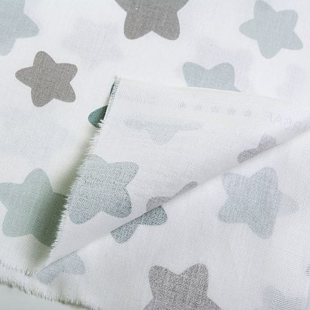 Ткань WellaHome "Ткань ранфорс Звезды" WH.4898-V18.3, длина 3 м, ширина 2,4 м, цвет белый, зеленый, серый