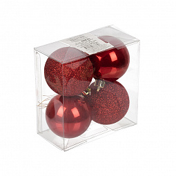 Шары новогодние 5.8 см красные ассорти, 4 шт