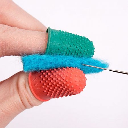 Наперстки применяется для защиты пальцев во время работы с иглами для фелтинга. Специальное покрытие предотвращает скольжение игл. Очень удобны при валянии маленьких деталей.