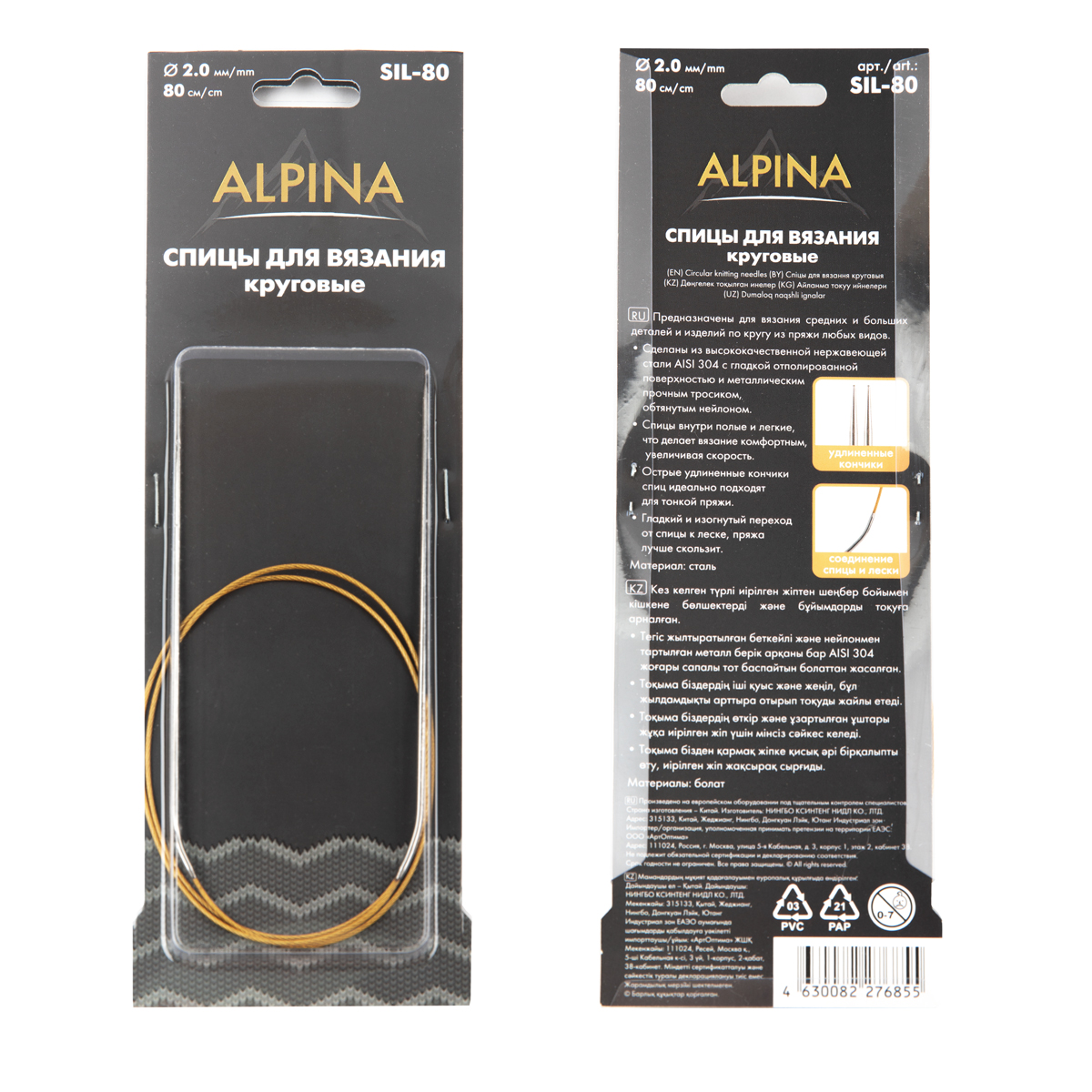 Предназначены для вязания средних и больших размеров изделий из пряжи любых видов. Сделаны из высококачественной нержавеющей стали AISI 304 с гладкой отполированной поверхностью. Спицы внутри полые и легкие, что делает вязание комфортным, увеличивая скорость. Острые удлиненные кончики спиц идеально подходят для тонкой пряжи.