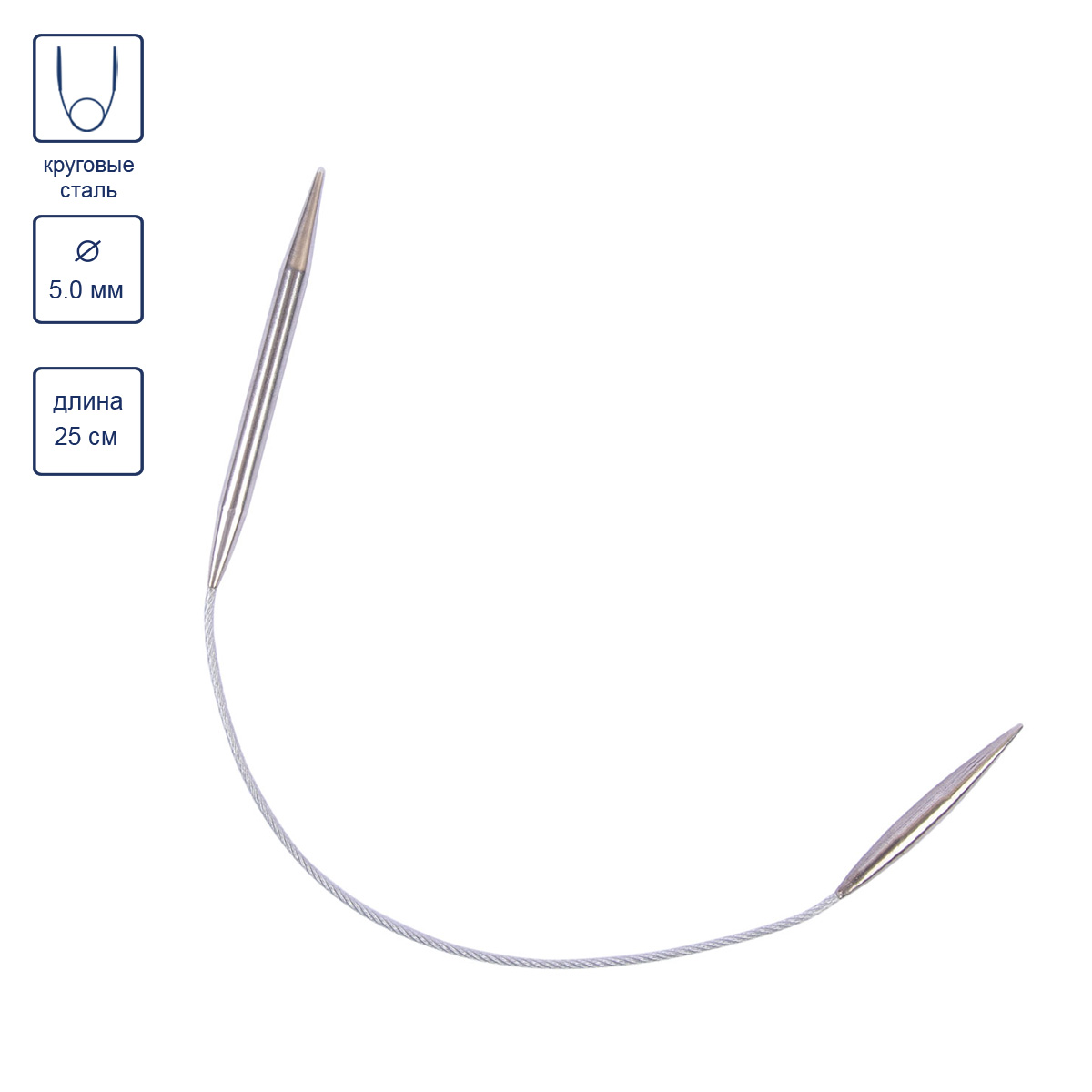 Предназначены для вязания изделий по кругу небольшого размера: носки, варежки, гольфы. Основное отличие от обычных круговых спиц в том, что тросиком соединены спицы разной длины: одна спица - 4.5 см, а другая - 7 см. Вязать удобно более короткой спицей, а за длинную - держаться. Леска состоит из металлической скрученной проволоки с пластиковой обмоткой. Соединение лески и спицы гладкое. Петли хорошо скользят по поверхности спиц. Прочные, легкие, гладкие, удобные в использовании. Кончики спиц закругленные, ровные.