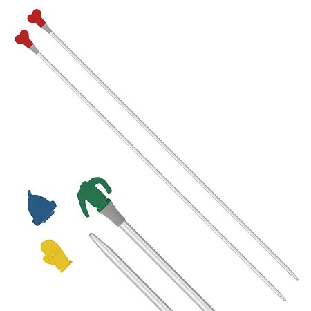 Спицы вязальные прямые из цельного, легкого алюминия с блестящей поверхностью, со сменными наконечниками.